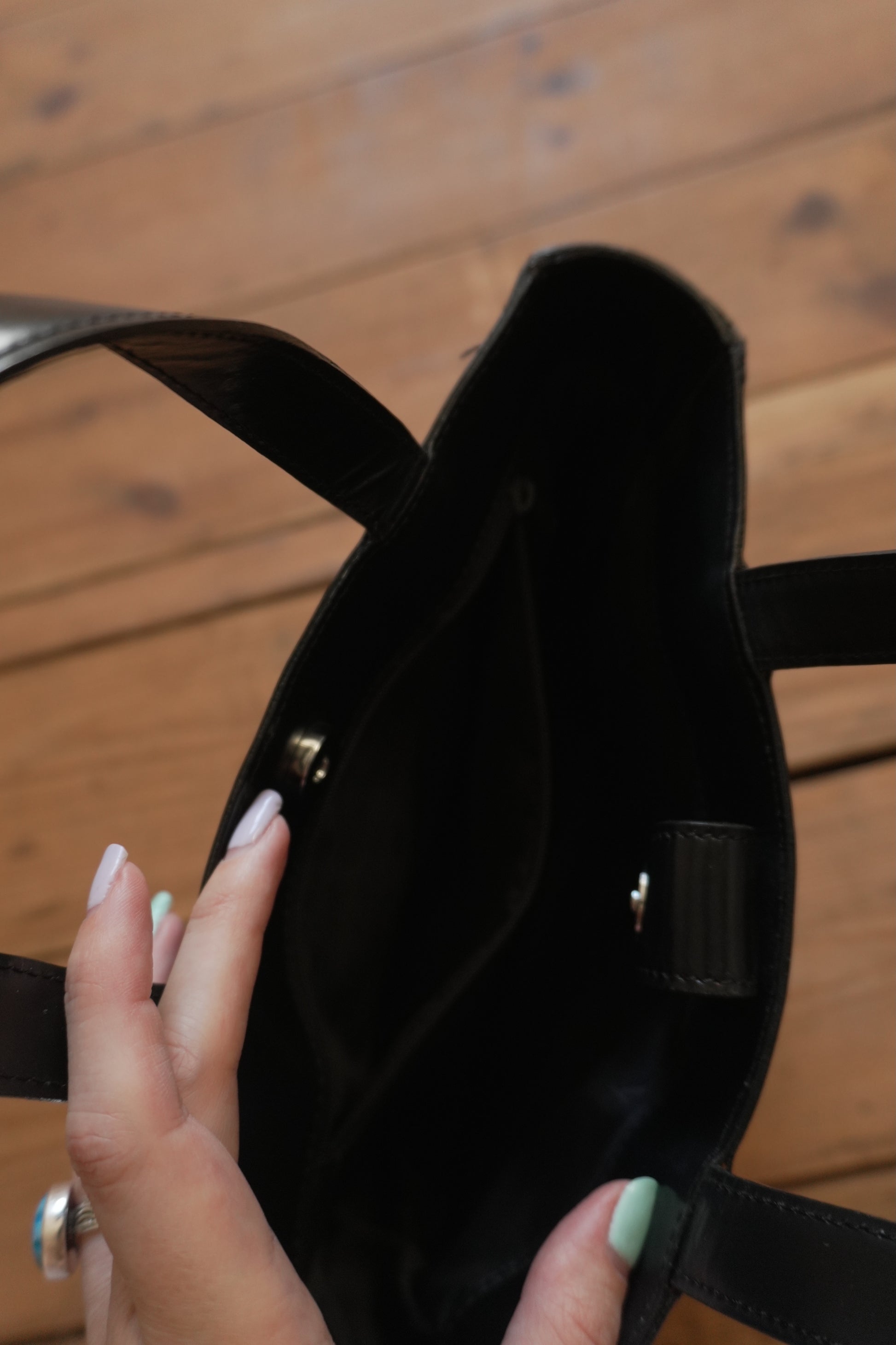 Calvin Klein Vintage Black Leather Tote Bag Women's Handbag Double Handle