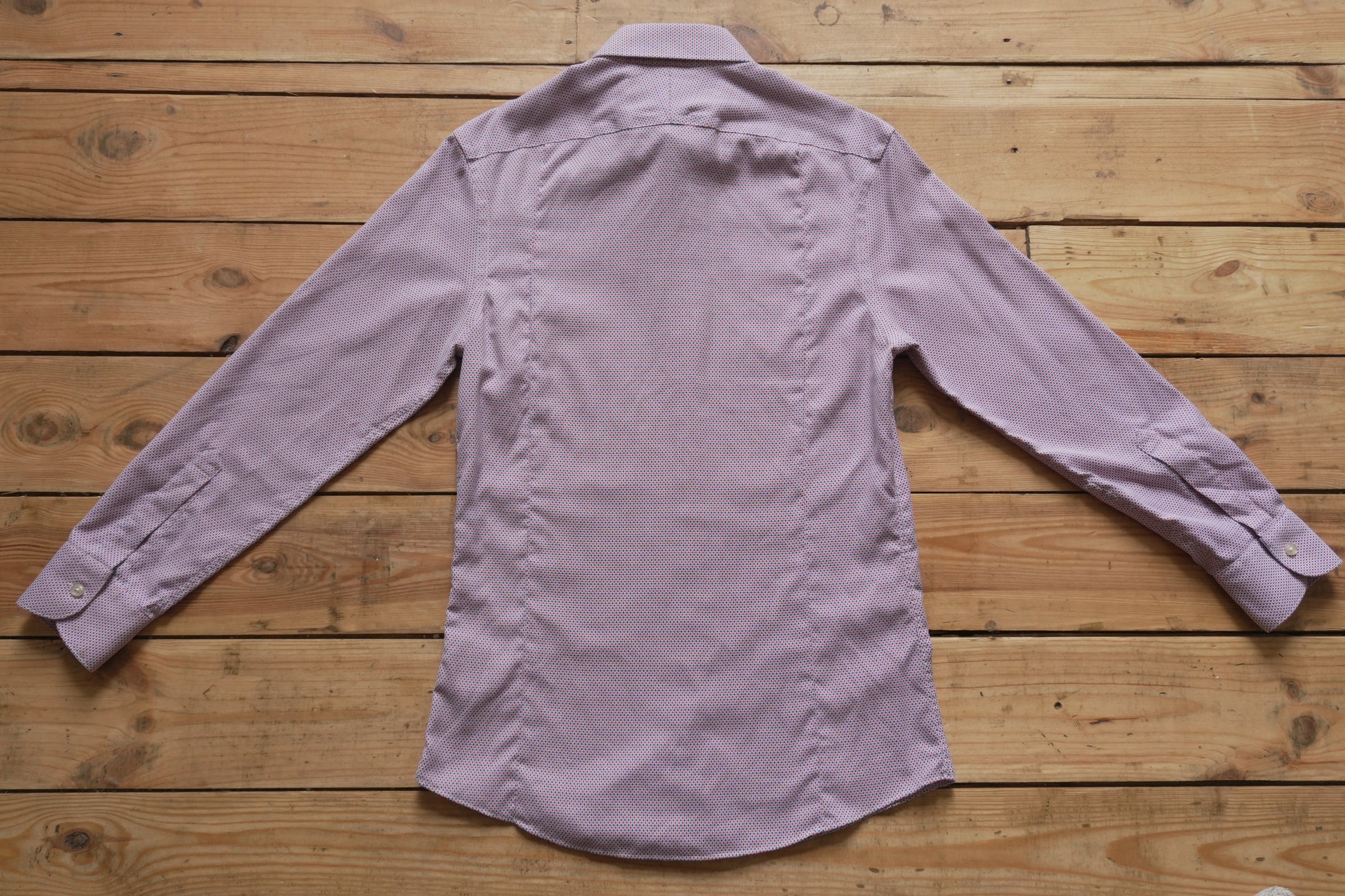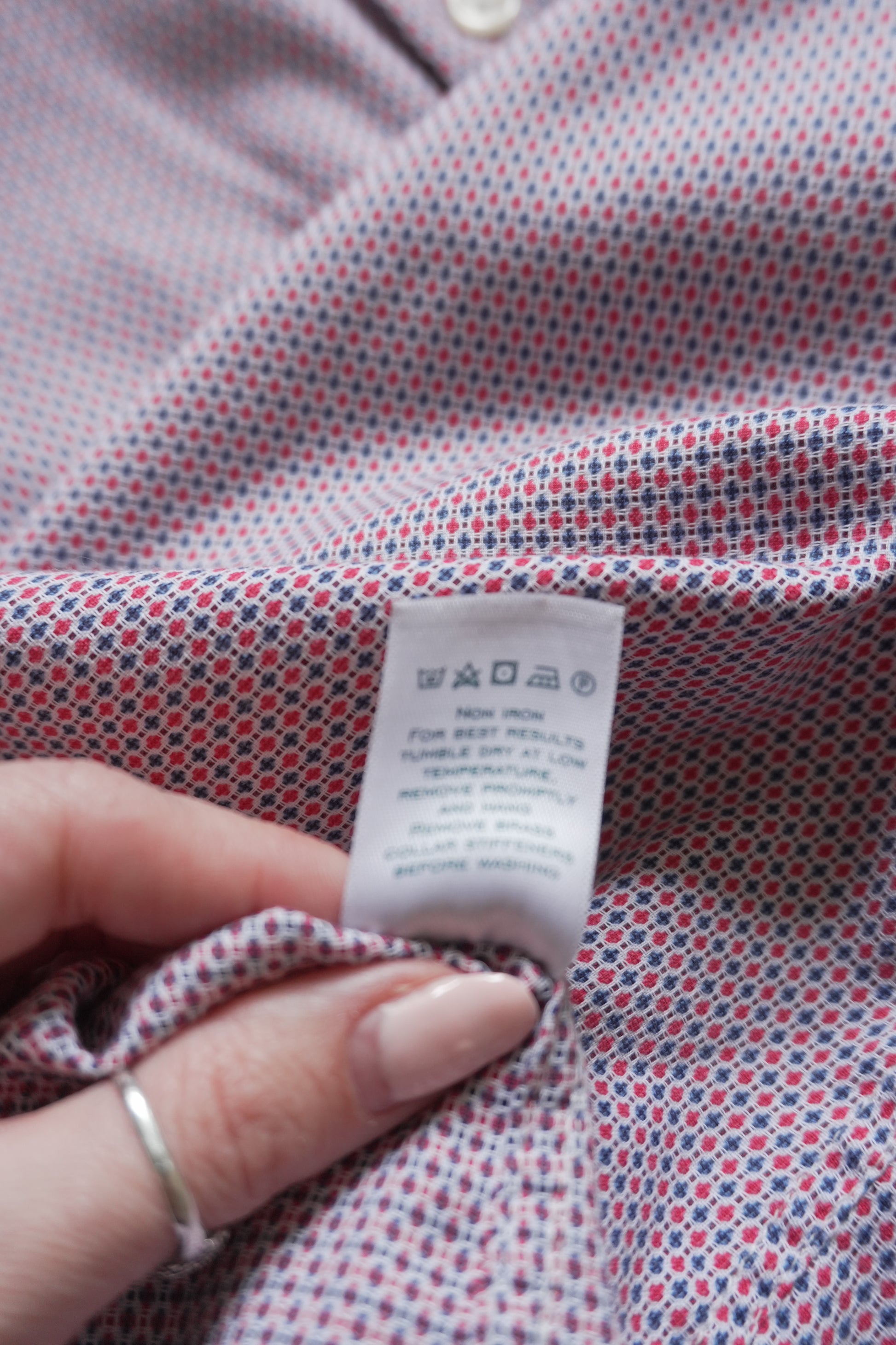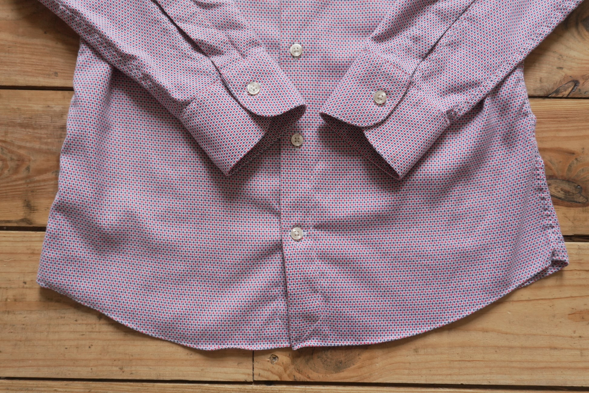 Charles Tyrwhitt Shirt Slim Fit Non Iron 15 1/2 Inch Men's Medium Red Blue Dot Geo Print Long Sleeve