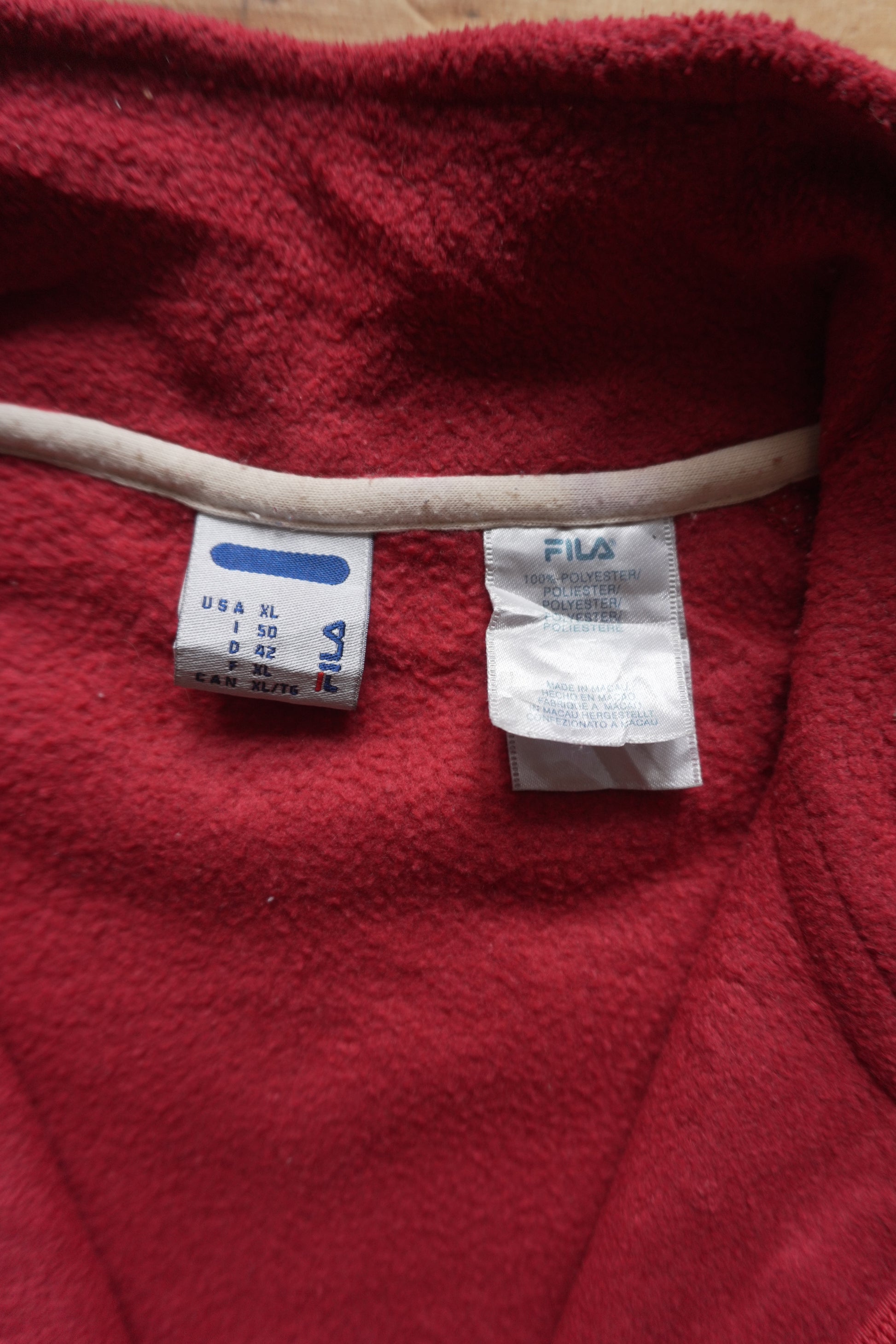 Fleece Fila Jacket Red Women's XL Full Zip Up High Neck Gorpcore