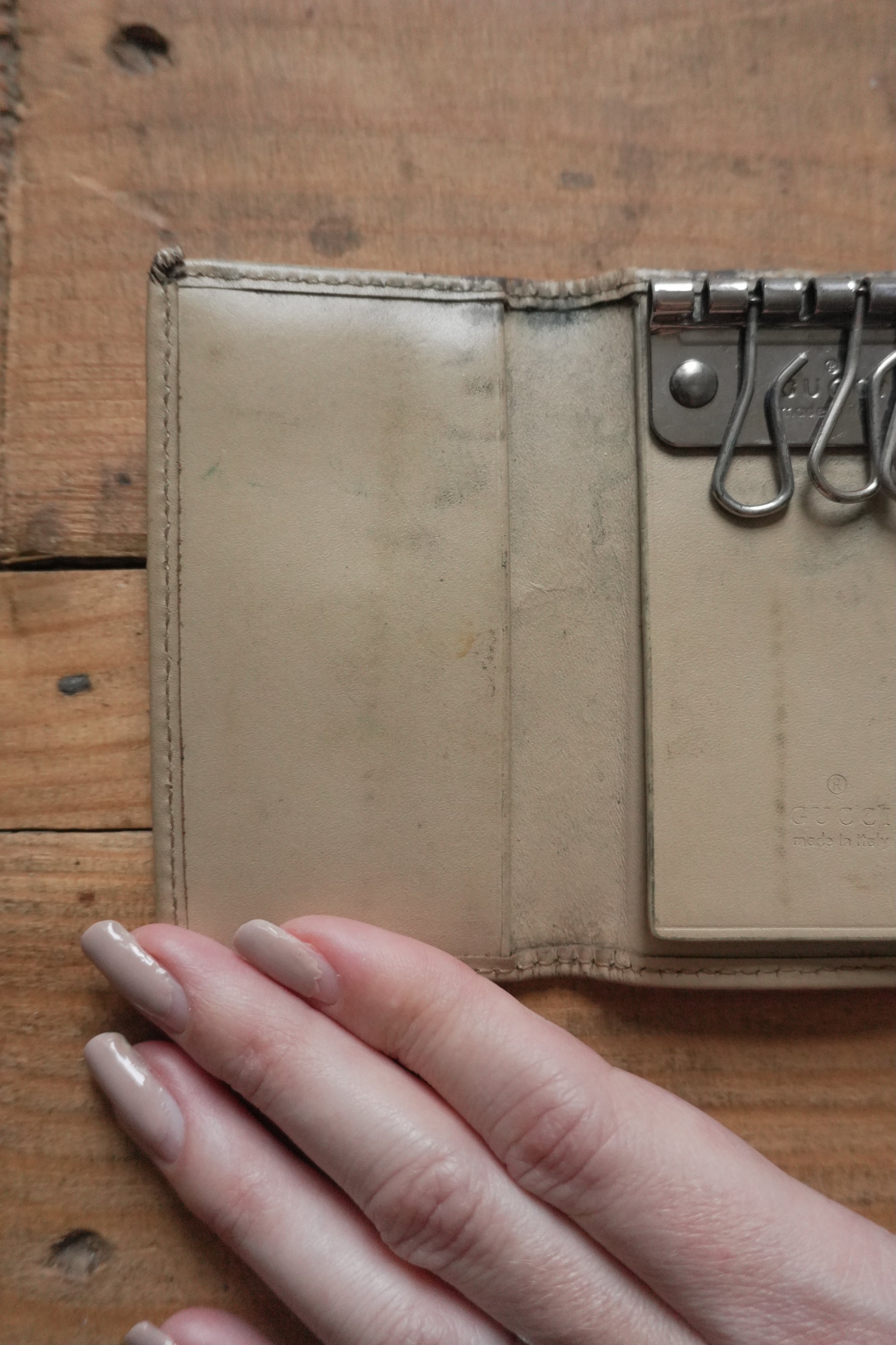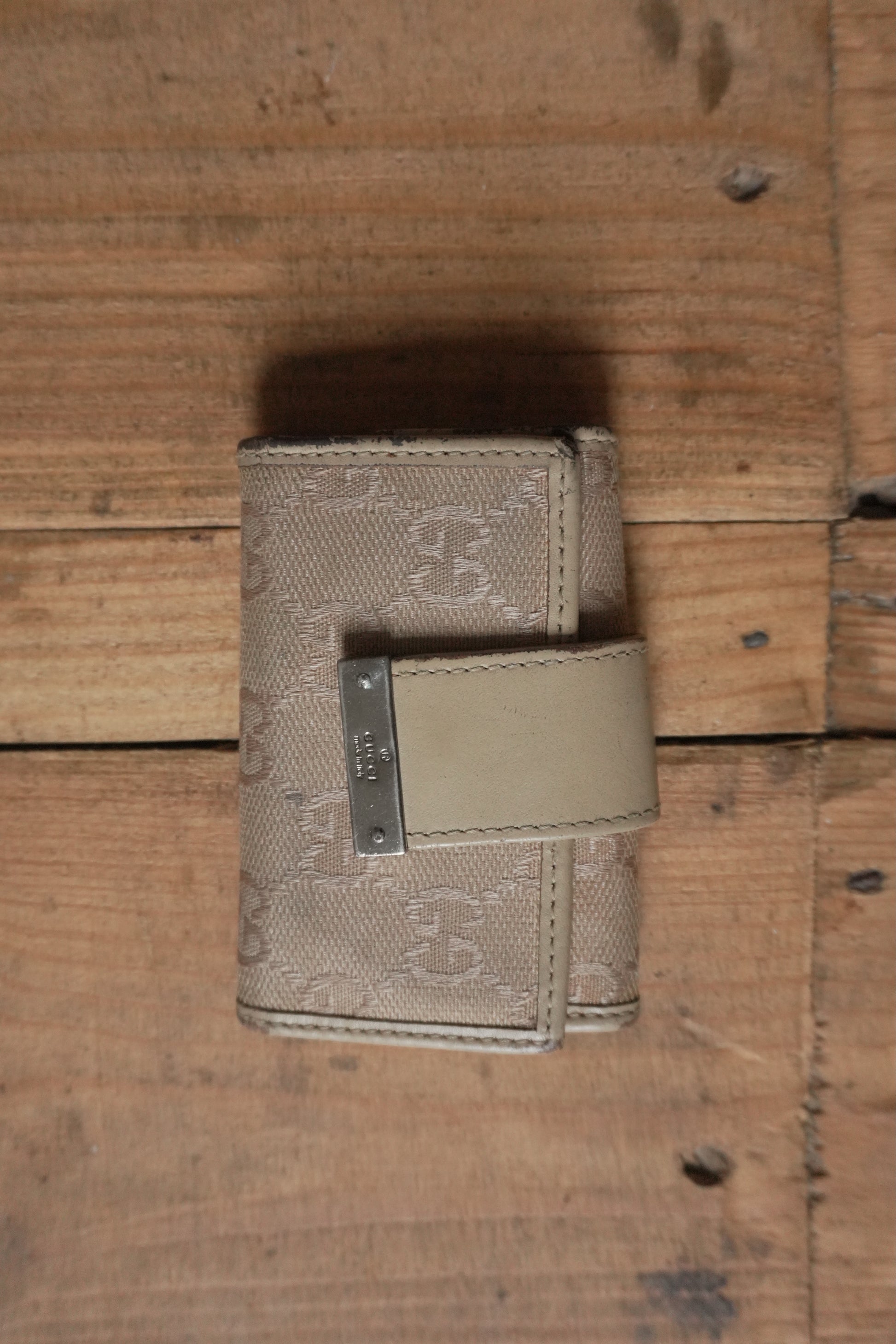 Gucci Key Holder Light Brown Leather Canvas Beige Key Case