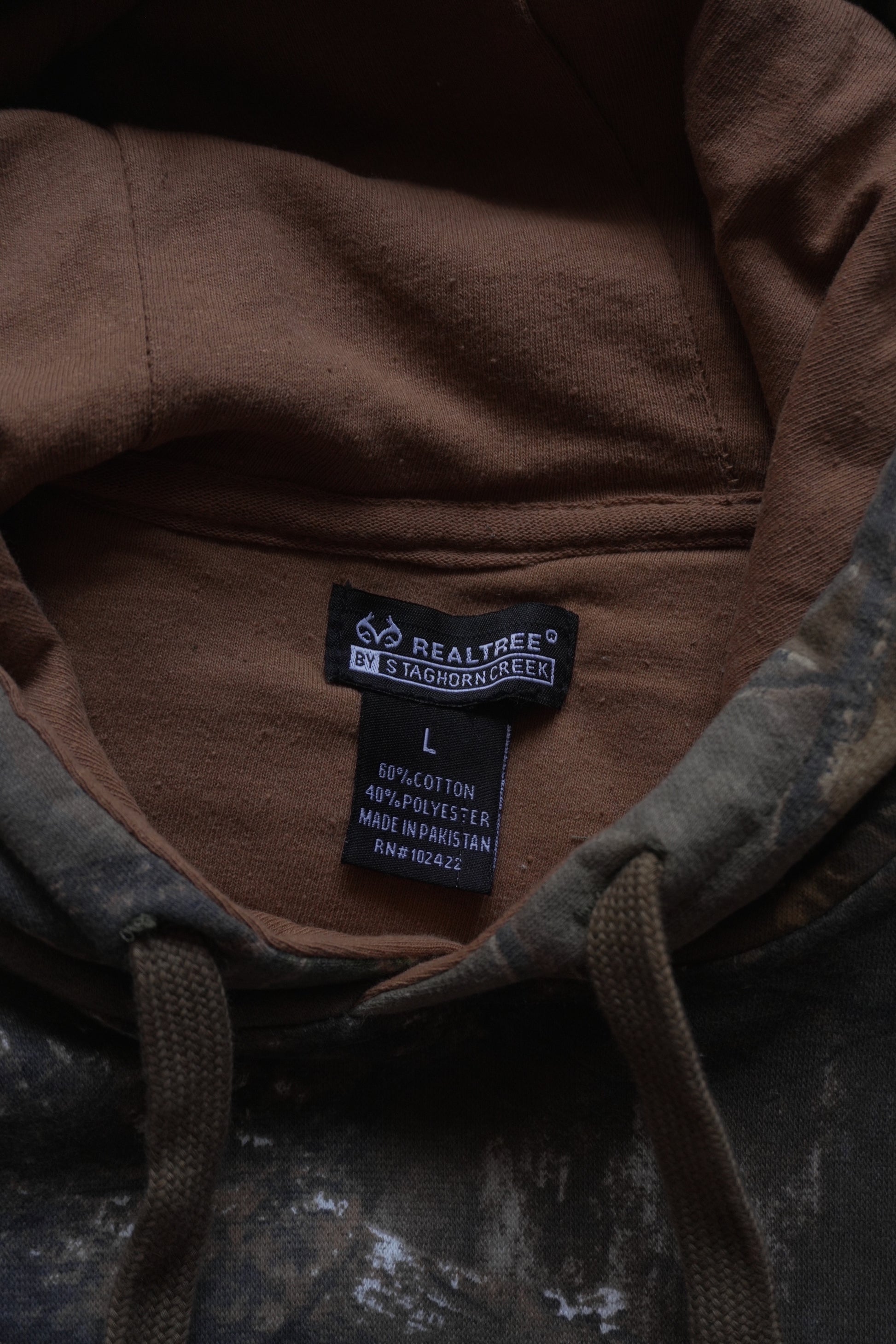 Hoodie Vintage Realtree 2000's Y2K Green Brown Camo Camouflage Staghorn Creek Streetwear Casual Men's Large Man Hooded Sweatshirt Pullover