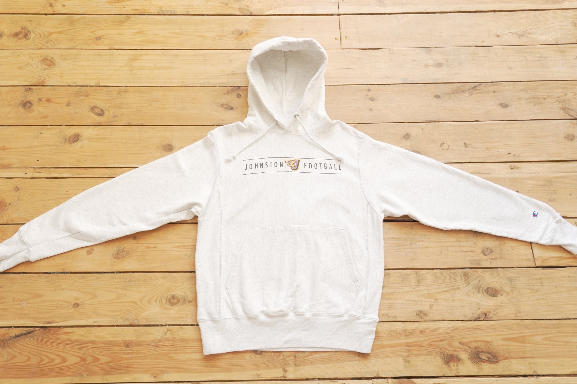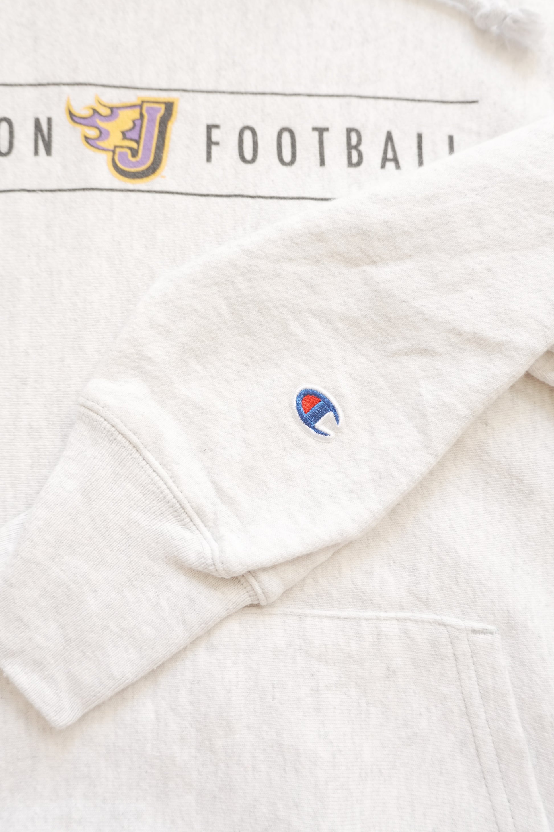 Hoodie Vintage Reverse Weave Champion Grey "C logo" on Sleeve Cotton Johnson Football Men's Small