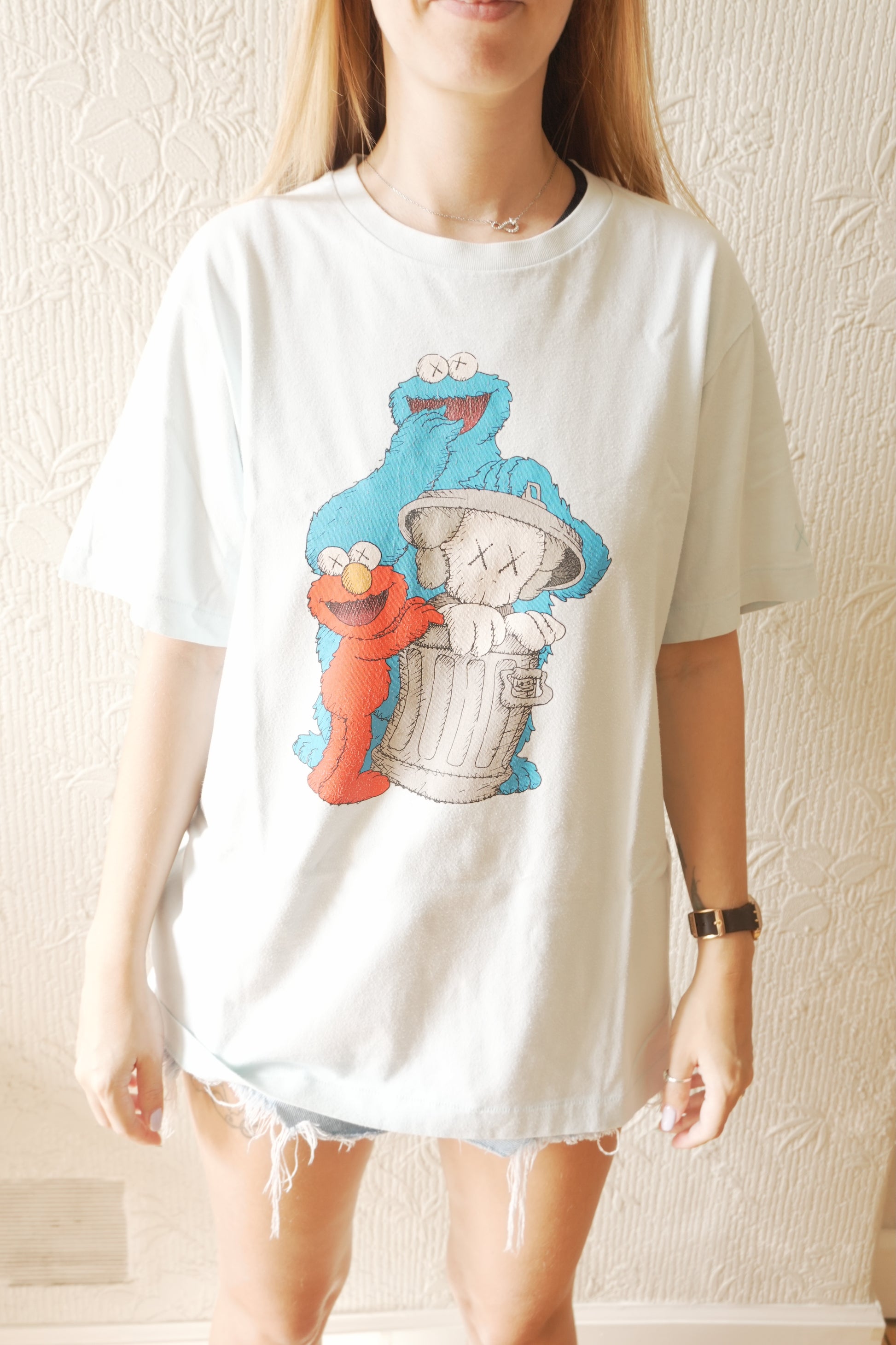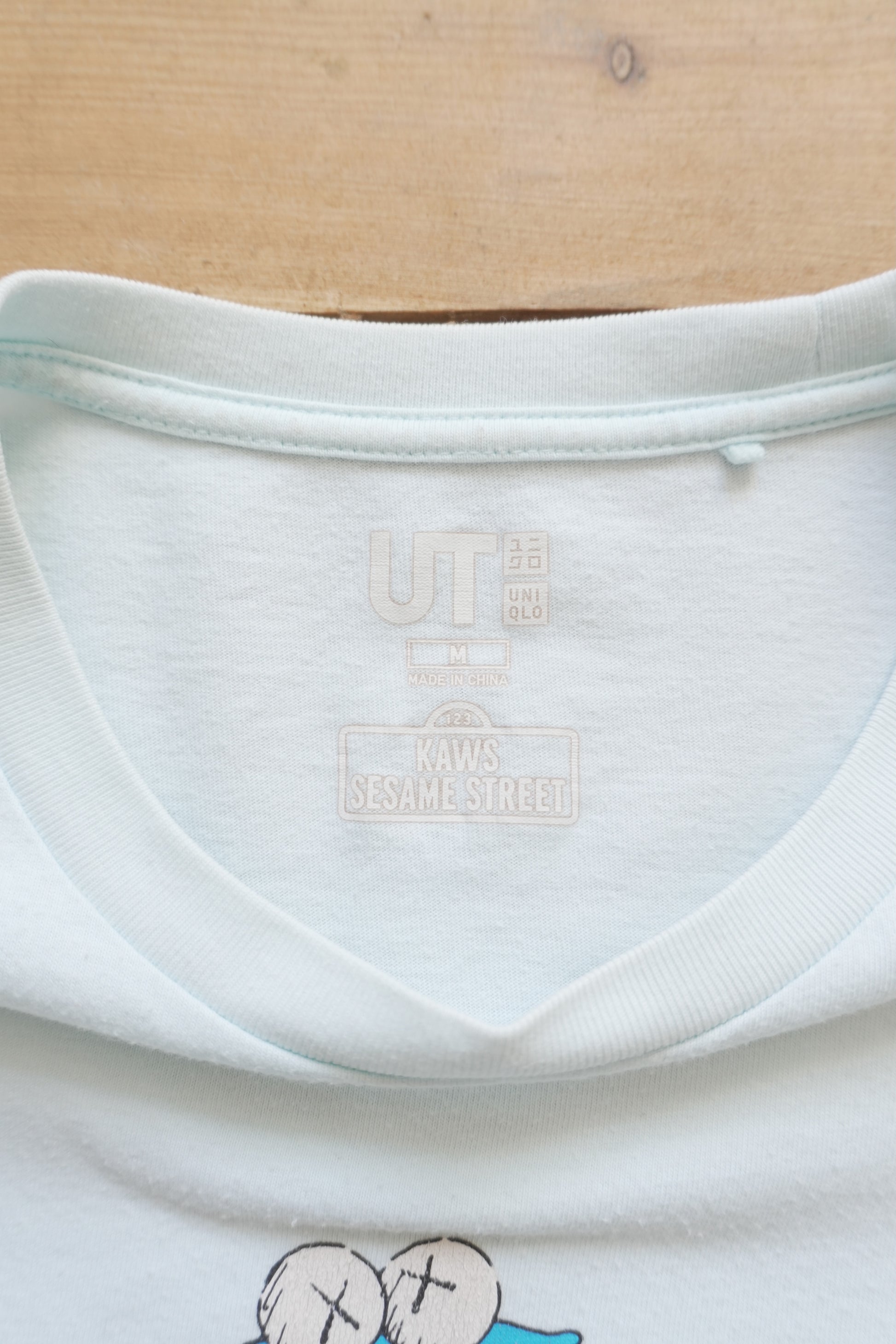 Kaws x Sesame Street x Uniqlo T-shirt Light Blue Printed Men's Medium
