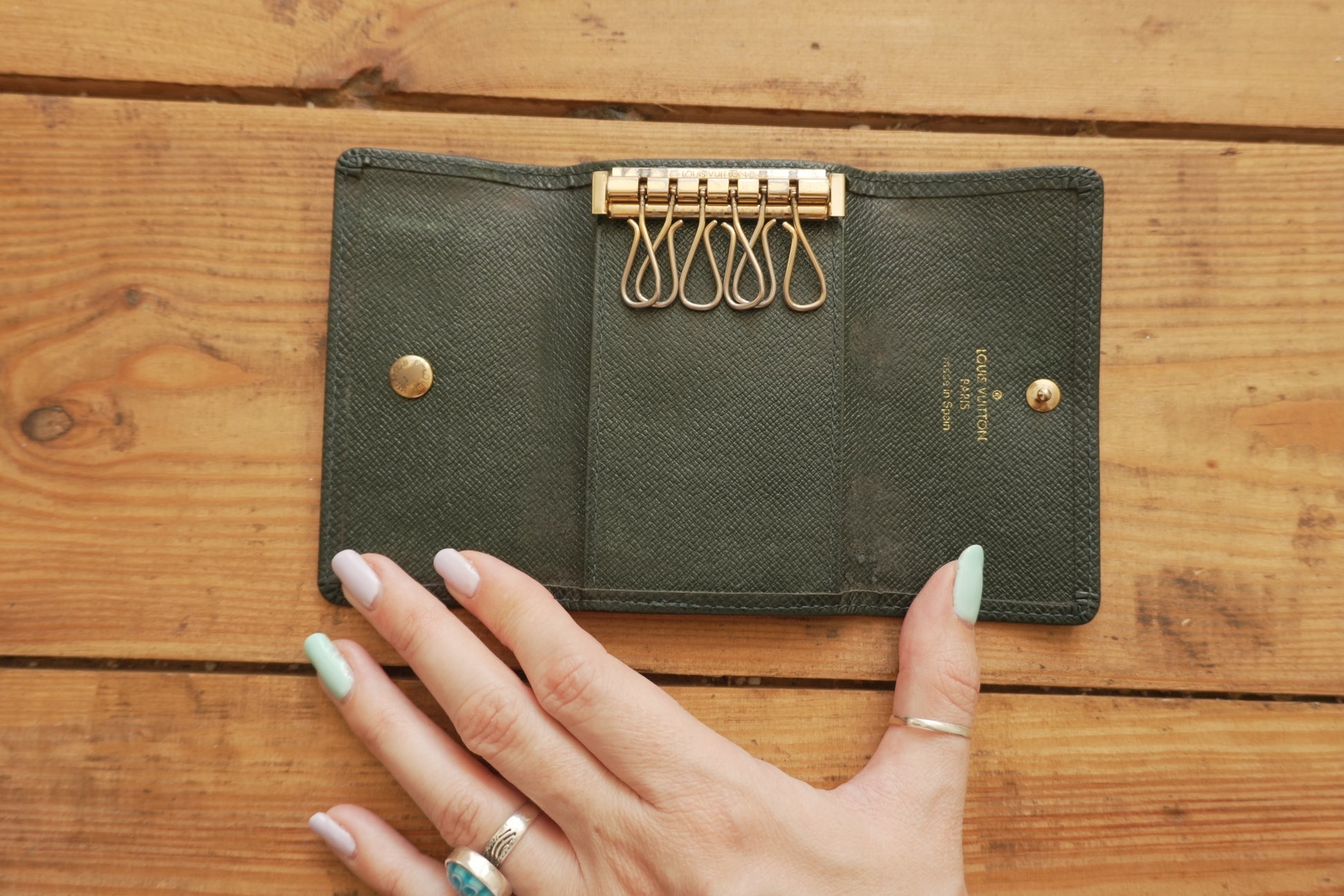 Louis Vuitton Green Leather Keycase Epi Leather Keyholder with Box