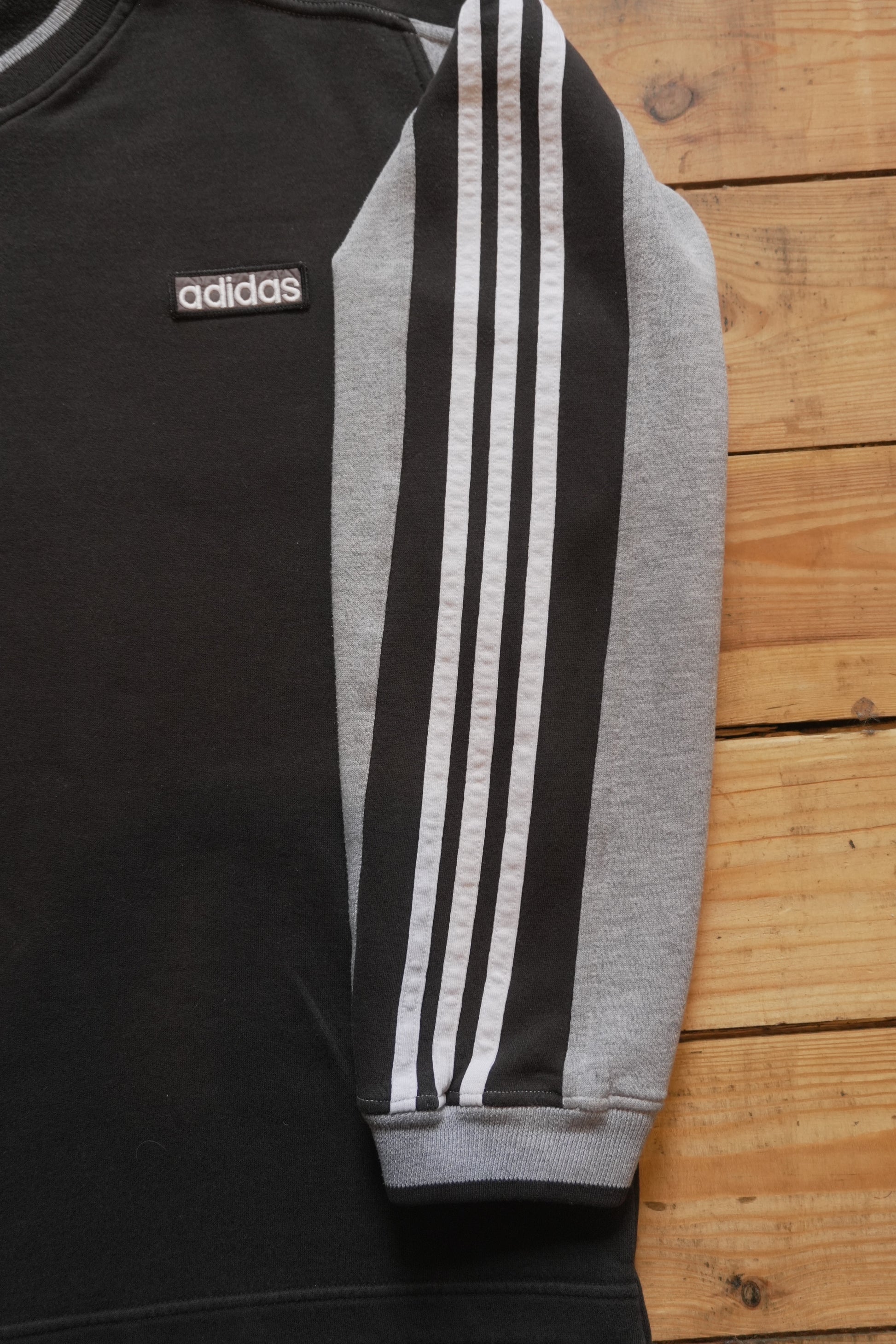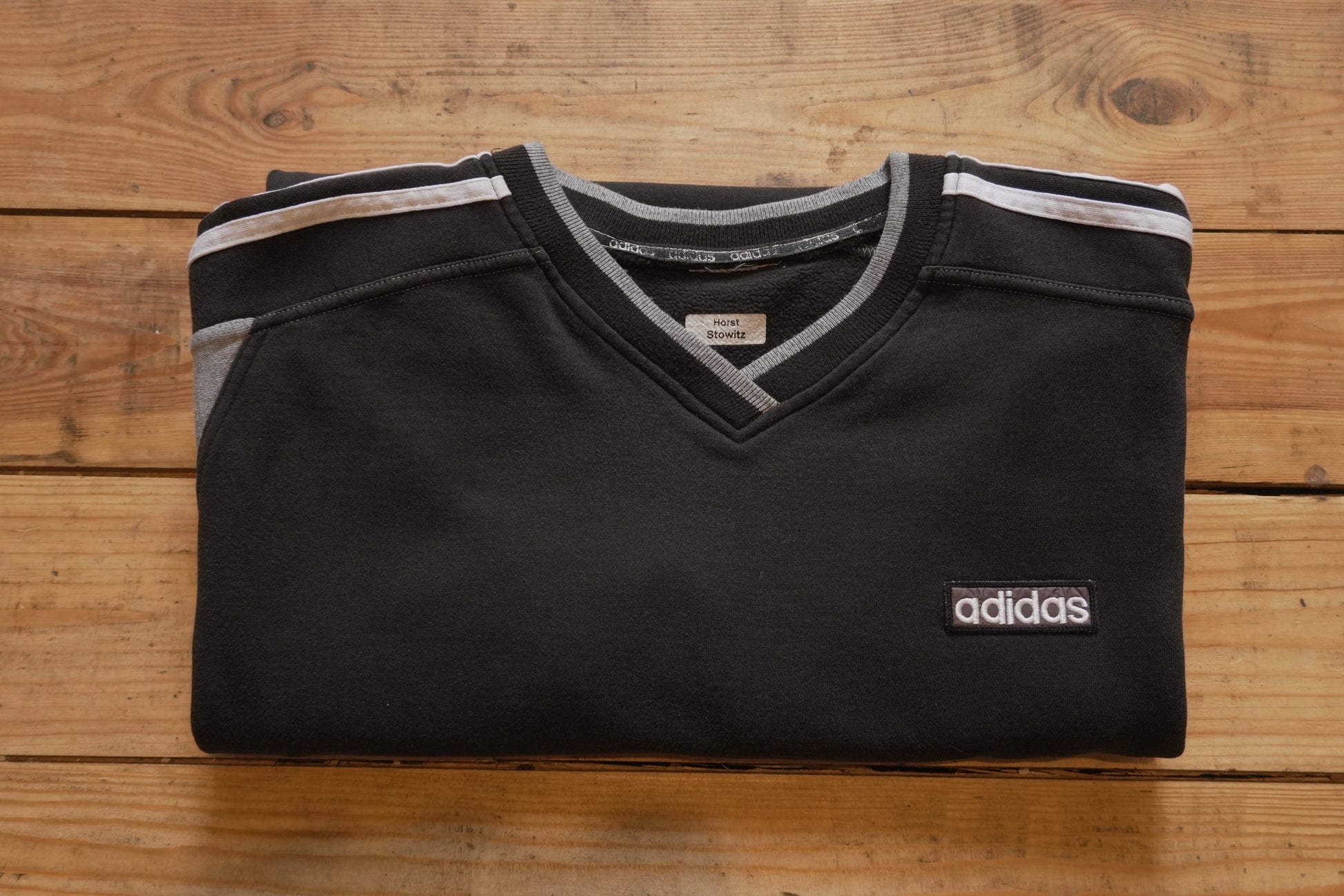 Vintage Adidas Sweatshirt Black White Grey V-neck White Arm Stripes Men's XL