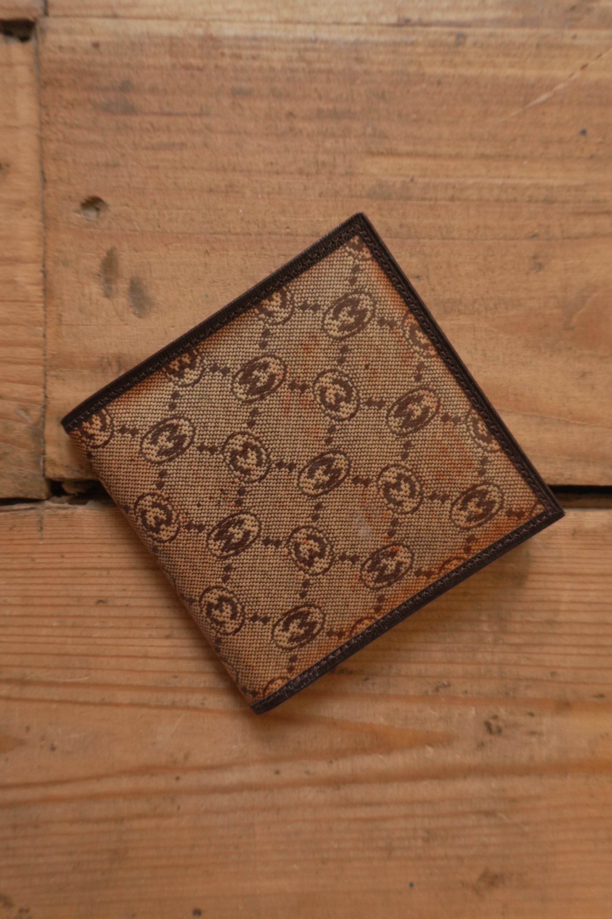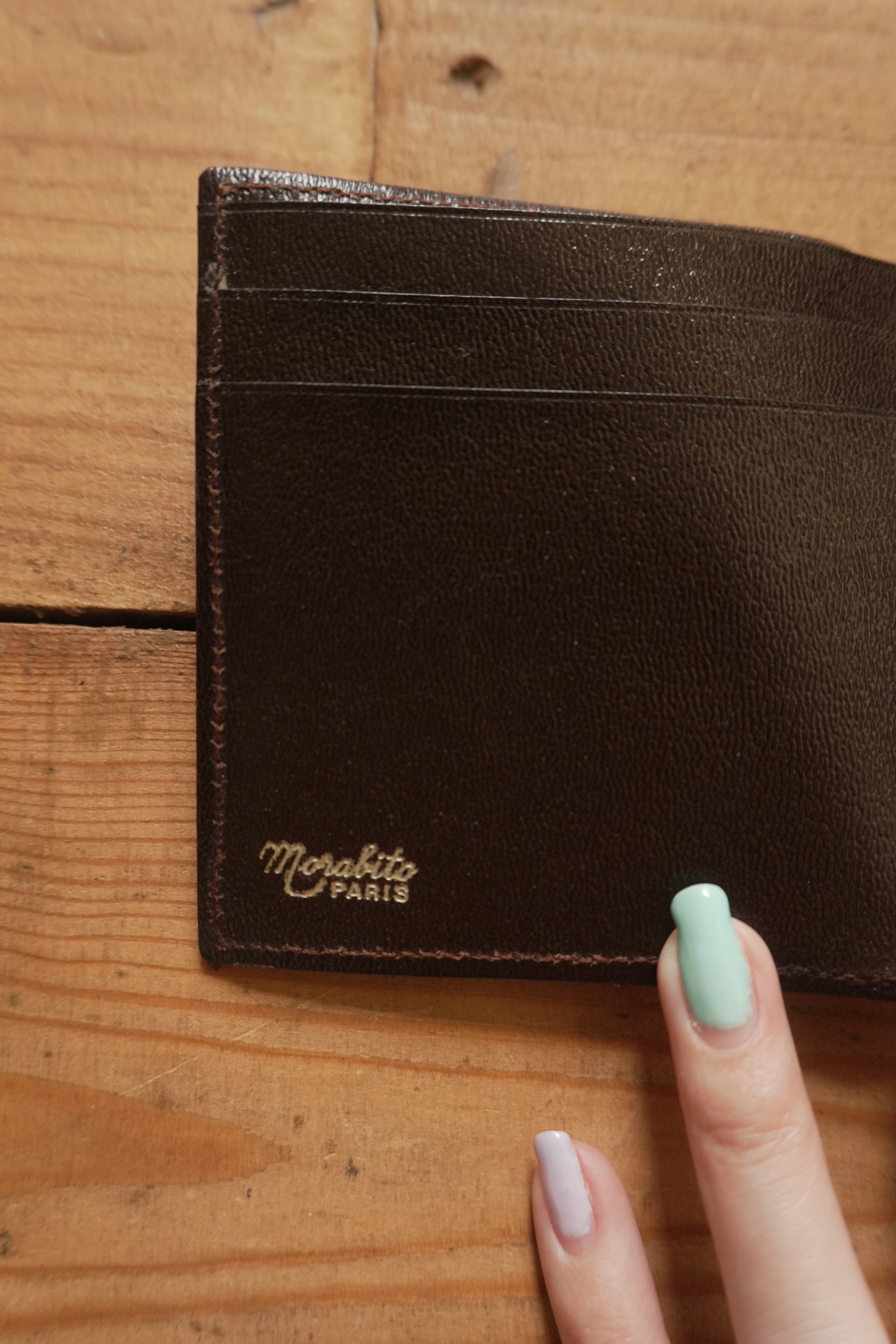 Vintage Brown Leather Wallet Morabito Paris Bi-Fold Monogram Print Men's