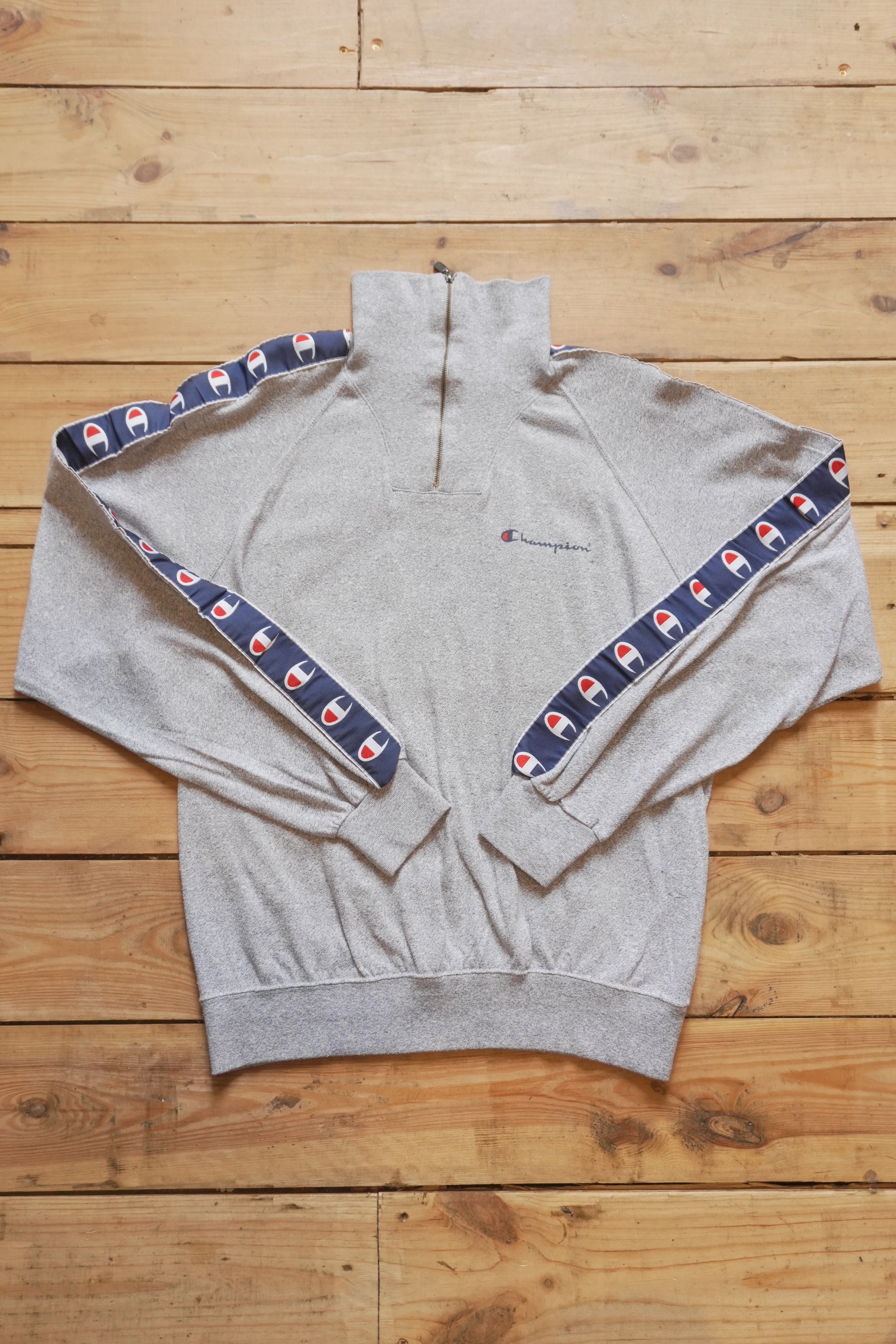 Vintage Champion Quarter Zip Sweatshirt Grey Marl Long Sleeve Turtle Neck Women's Medium