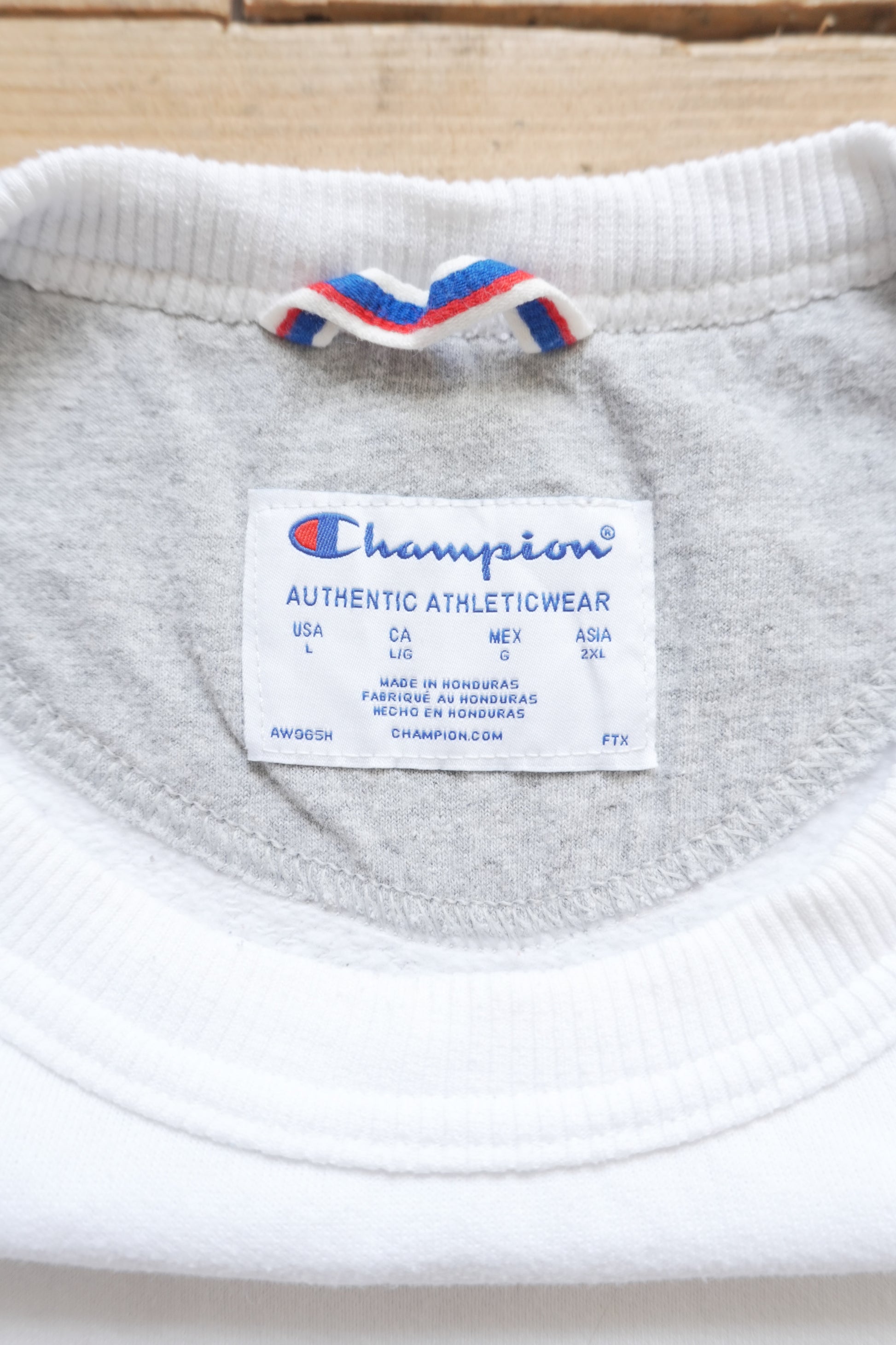 Vintage Champion Sweatshirt 90's Men White Large Dual "C" logos (Chest + Sleeve) Sportswear