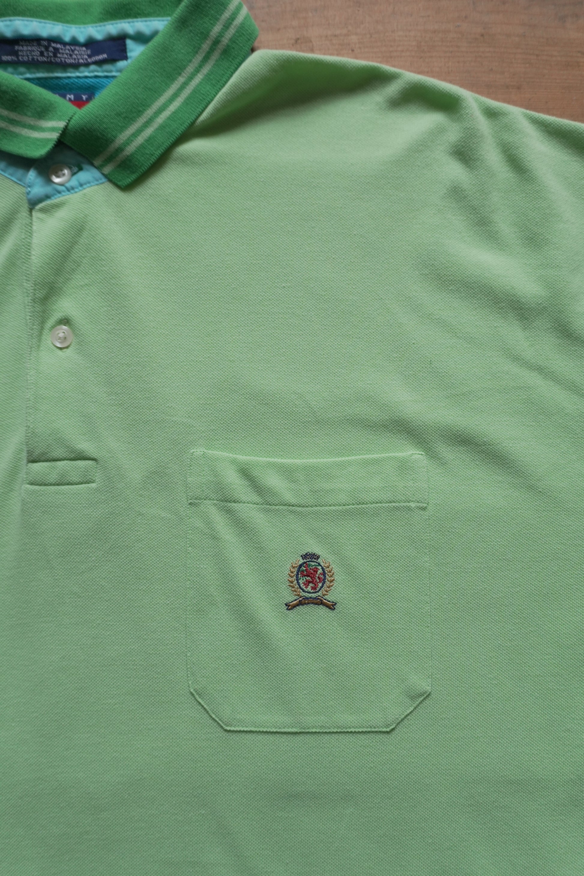 Vintage Tommy Hilfiger Polo Shirt Green Early 2000's XL Blue Details